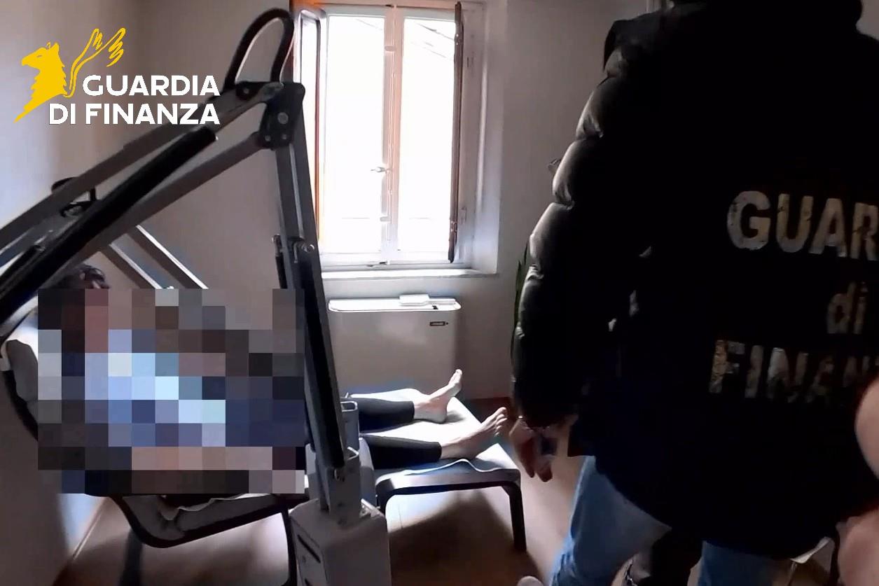 La Guardia di Finanza ha effettuato la scoperta mentre l’uomo era all’opera, sotto gli sguardi increduli dei pazienti in attesa di trattamento.